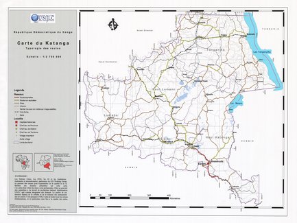 Title: Carte du Katanga Typologie des routes - Scale: 2750000