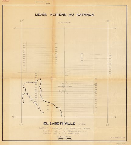 Title: Levés aériens au Katanga Elisabethville - Scale: 300000 - Disposition schématique des bandes au 1:20.000