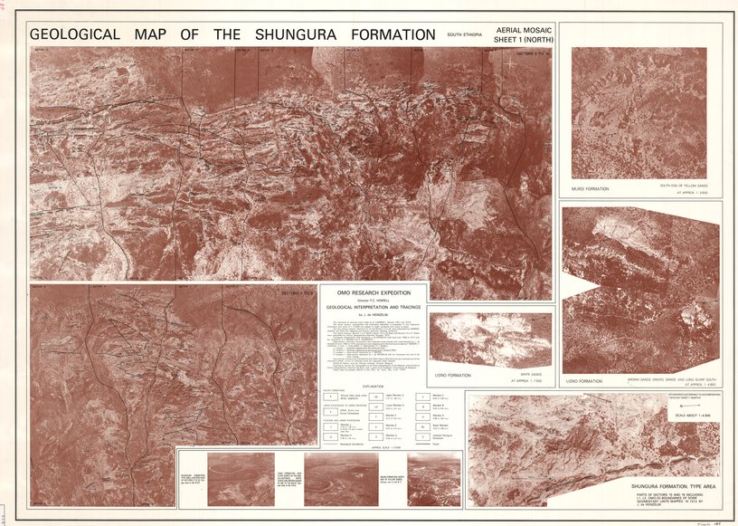 Title: Geological map of The Shungura formation : aerial mosaic, South Ethiopia OMO research Expedition - Scale: 4000 - Sheet number/Numéro de feuille/Bladnummer: 1 (North)