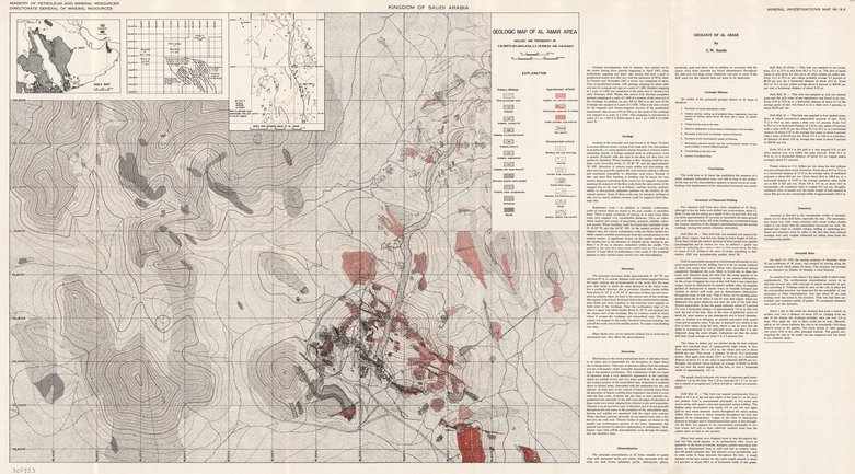 Title: Kingdom of Saudi Arabia Geologic Map of Al Amar Area, Mineral Investigations - Scale: 4000 - Geology and Topography by C. W. Smith, W. H. Maclean, S. K. Herness and A. M. Shanti - Sheet number/Numéro de feuille/Bladnummer: MI-9-A