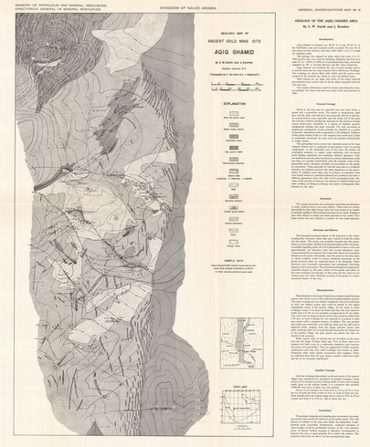 Title: Kingdom of Saudi Arabia Geologic Map of Ancient Gold Mine Site Aqiq Ghamid, Mineral Investigations - Scale: 4000 - Topography by K. Herness and J. Gasperetti - Sheet number/Numéro de feuille/Bladnummer: MI-6