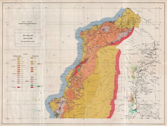 Title: Geological map of the coastal zone of Southwestern Ecuador - Scale: 500000 - Assemblage de 2 feuilles - Sheet number/Numéro de feuille/Bladnummer: 1