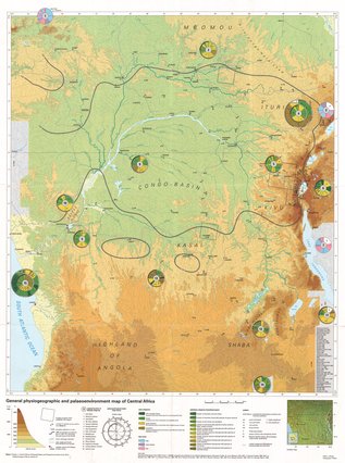 Title: General physiogeographic and palaeoenvironment map of Central Africa, Palaeoecology of Africa and the Surrounding Islands, Volume 27 - Scale: 5555555 - Annex 1
