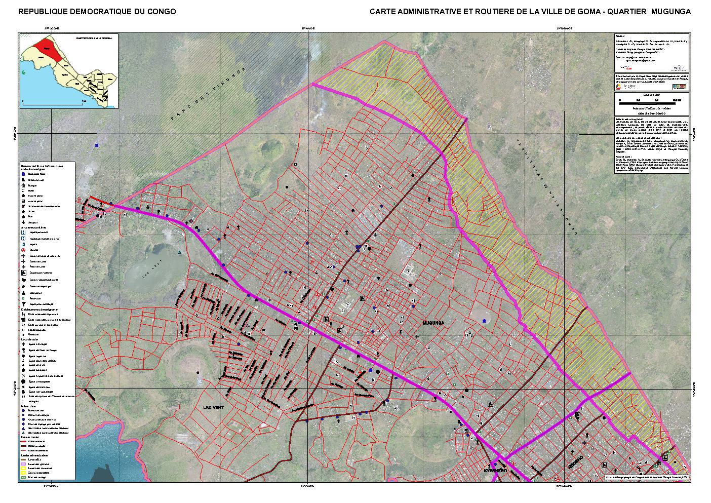Title: Carte administrative et routière de la ville de Goma Quartier Mugunga - Scale: 6500 - ISBN : 978-9-4645-9609-0