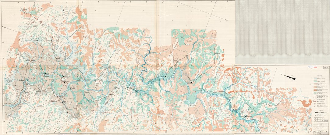 Title: Bassin de retenue - Carte photogéologique Fig. 1g, Etude d'exécution du barrage et de l'usine hydroélectrique de Manantali - Scale: 80000 - Mission C101 Géologie - Géotechnique