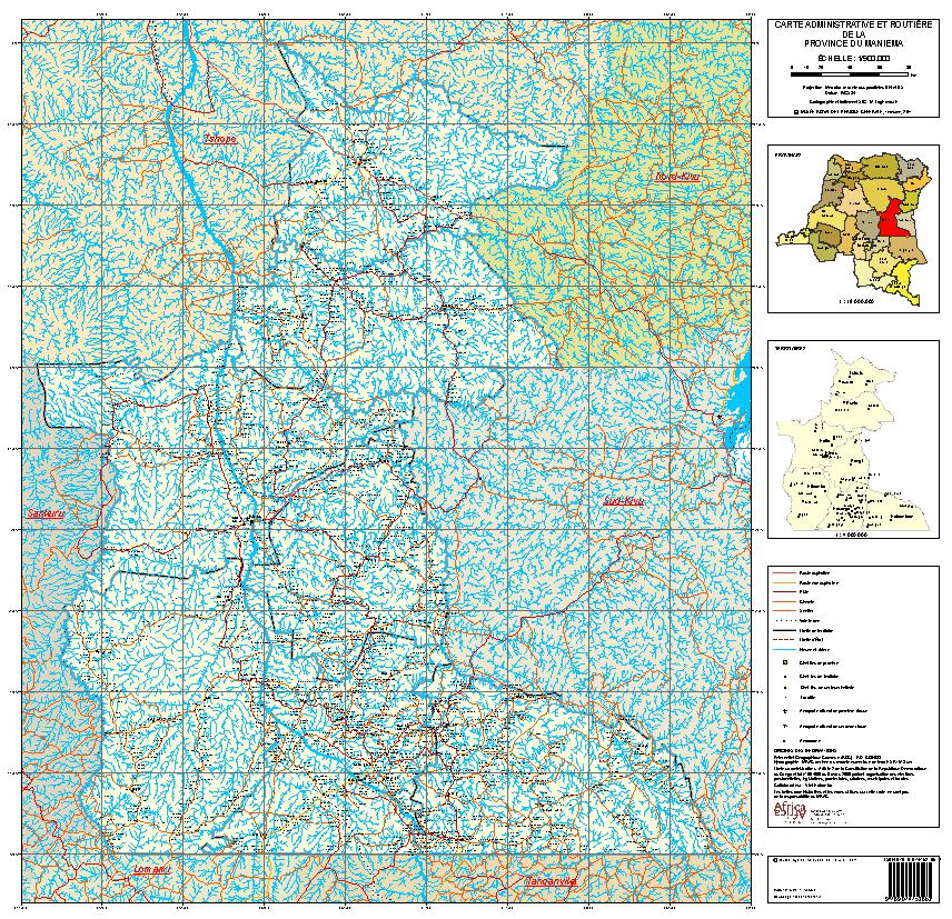Title: Carte administrative et routière de la Province du Maniema - Scale: 900000 - ISBN 9789074752862