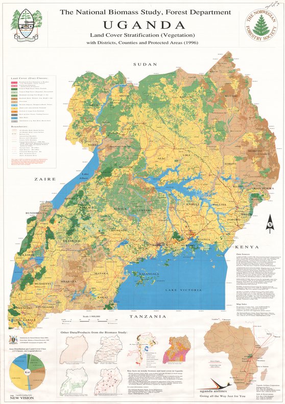 Title: Uganda Land Cover Stratification (Vegetation) with Districts, Counties and Protected Areas - Scale: 900000