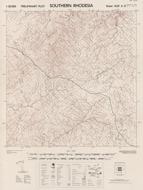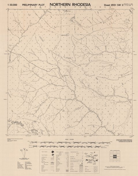 Cette carte localise les infrastructures, les routes, les localités, les différentes forêts, les agglomérations dans une partie de Rhodesia (Zambie-Zimbabwe) vers les années 1952.