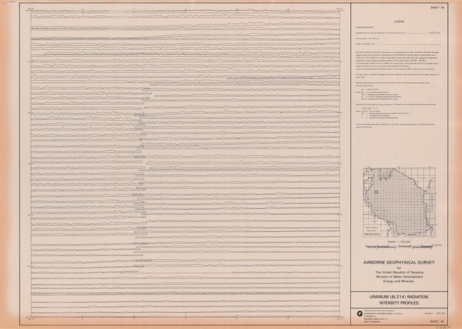 Title: Airborne Geophysical Survey for The United Republic of Tanzania, Ministry of Water, Energy and Minerals, Uranium (Bi 214) radiation Intensity profiles - Scale: 100000 - Sheet number/Numéro de feuille/Bladnummer: 95